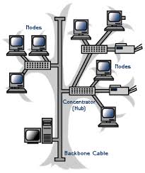 adalah kombinasi karakteristik antara topologi bintang dan topologi bus. Topologi ini terdiri atas kumpulan topologi bintang yang dihubungkan dalam satu topologi bus sebagai jalur tulang punggung atau backbone. Komputer-komputer dihubungkan ke hub, sedangkan hub lain di hubungkan sebagai jalur tulang punggung.